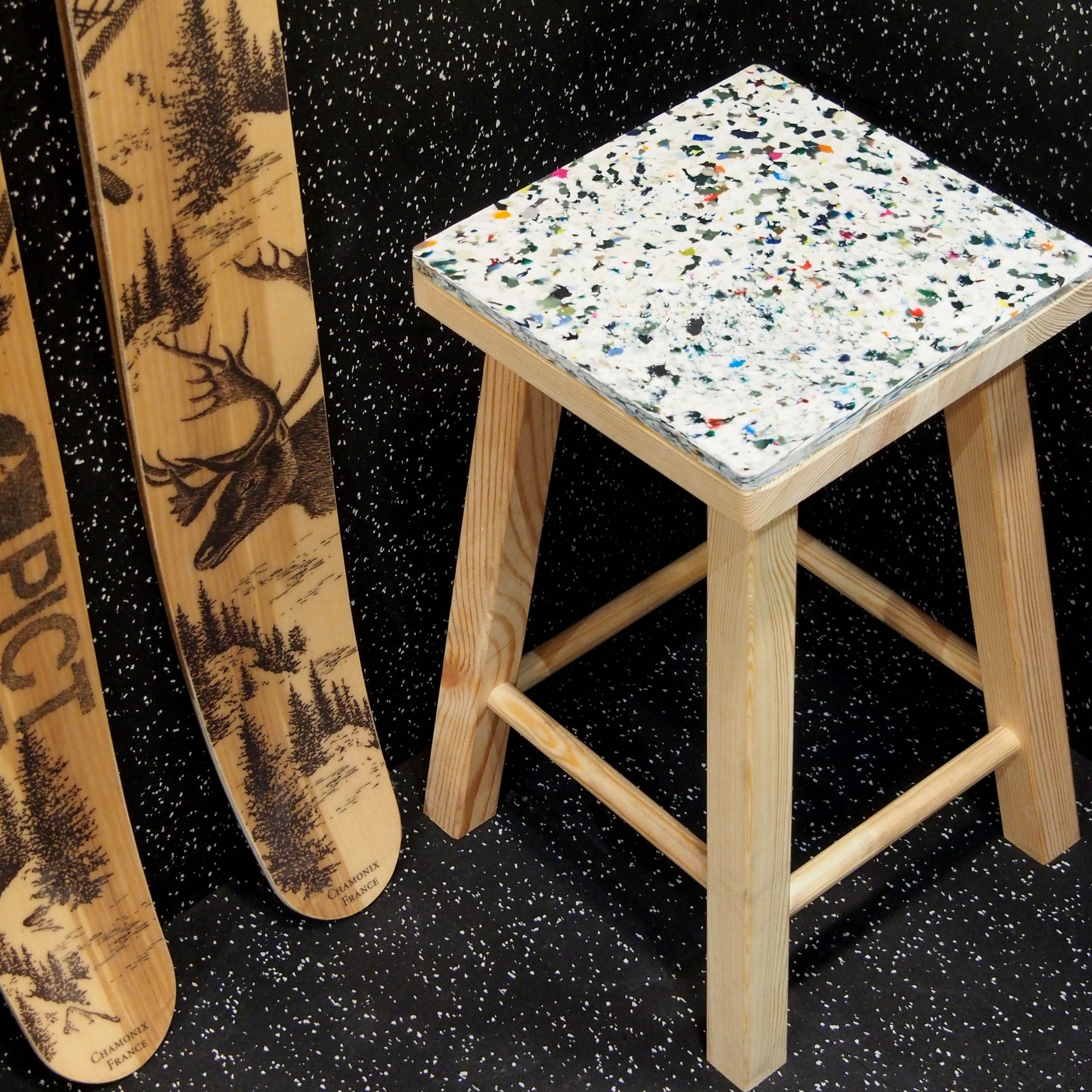 Marque éminemment engagée dans le développement durable, nous avons développé un coloris de terrazo multicolore en 100% plastique recyclé issus de la post-consommation : le Clean Dripping.