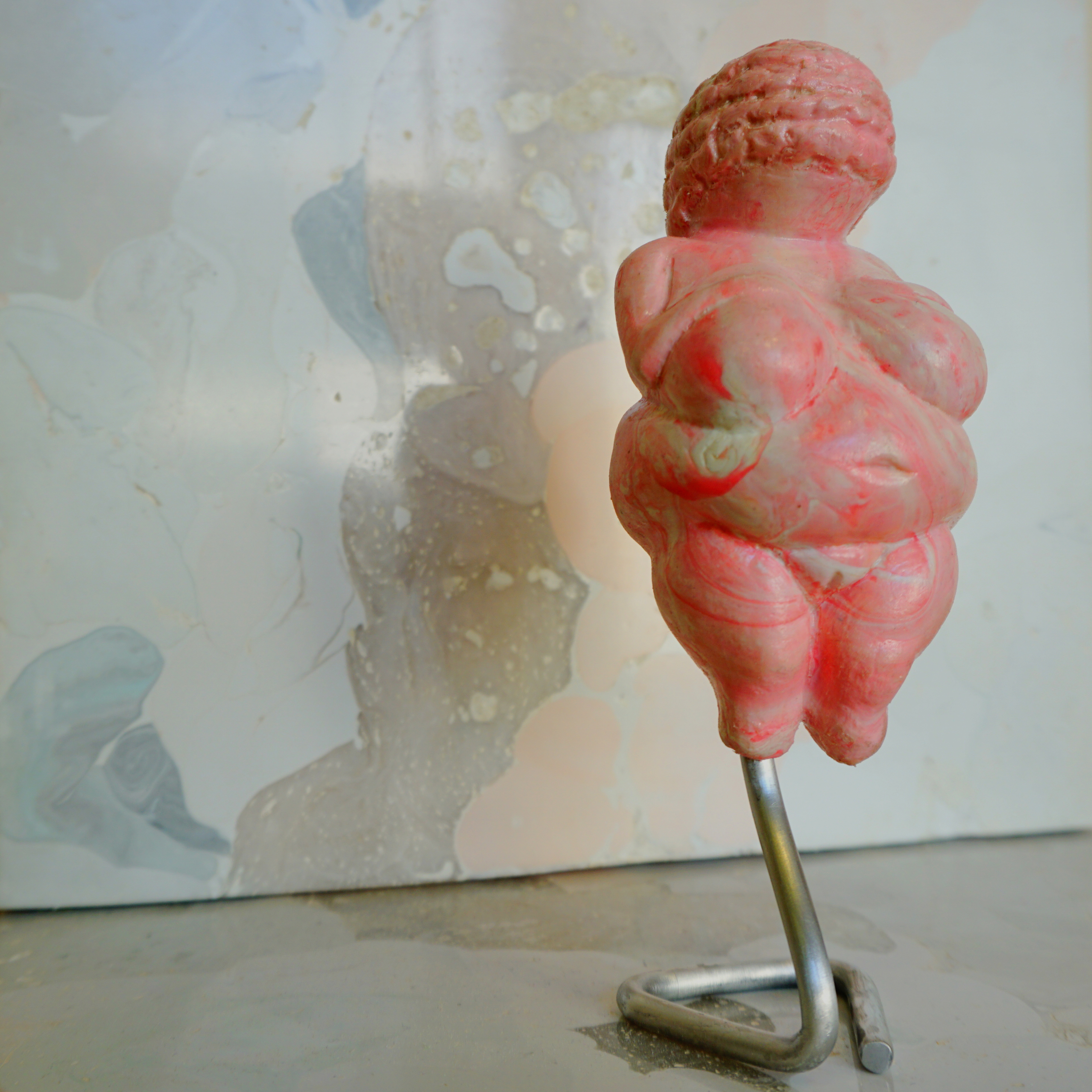 The original Venus was originally covered with red pigments, these replicas made from pink baby bottle parts, create a shift towards the archetypes of our own time. By the historical loan, this artwork reminds us that all codes and symbols projected on the female body are doomed to be outdated. It is because the Venus of Willendorf is eminently beautiful that it owes its world fame, 24 000 years after its creation, hence the title of Miss World given to this series.