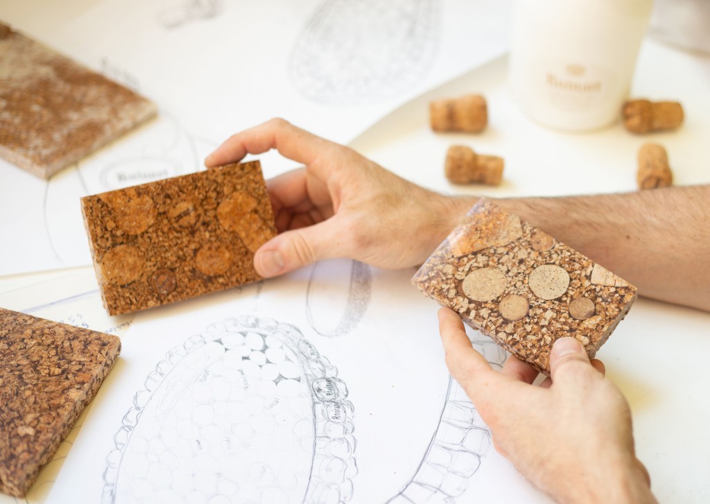 » Pour le Ruinart Studio, Johé Bruneau façonne une corbeille à fruits en réutilisant les bouchons de liège Ruinart ayant déjà servi.